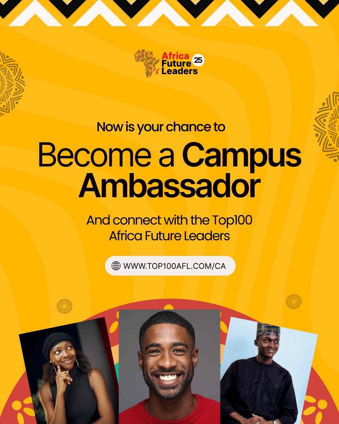 Africa’s future is being shaped on campuses today—and we are inviting passionate, driven, and visionary students to be part of that journey. The Africa Future Leaders (AFL) initiative is officially opening applications for its Campus Ambassador Program, an opportunity for students across African universities and tertiary institutions to represent, grow, and co-create impact with the Top100 Africa Future Leaders network.